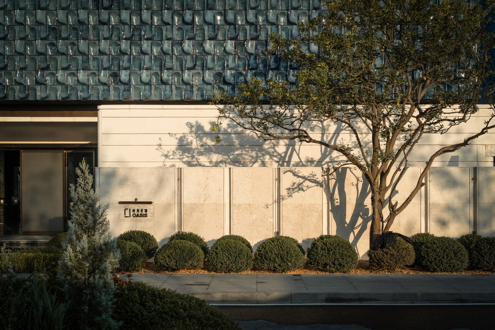 本项目位于南京江北新区核心区,总图规划以洋房最大化为目标,旨在打造中心地段的标杆低密生活场域以及唤起精神共鸣的城市艺术绿洲。 示范区以“艺术生活藏馆”为概念,沿街立面由千余块手工窑变陶砖构成流动的艺术长卷,其下以肌理丰富的贝金米黄石材基座承接,东方陶瓷美学与西方石材工艺的融合,体现了南京中西合璧的历史特点,为整个社区奠定了典雅文艺的基调与气质,营造了如美术馆般的礼仪盒子入口,空间有收有放,形成入口庭院、景观花园等多层次体验。 住宅立面设计提取南京云锦的韵律与金陵图卷的意象,以弧线石材与金属构件勾勒建筑轮廓,搭配全景落地窗与错层露台,实现光影、视野与自然的交融,实现“离尘不离城”的生态宜居体验,诠释自然与奢居的融合